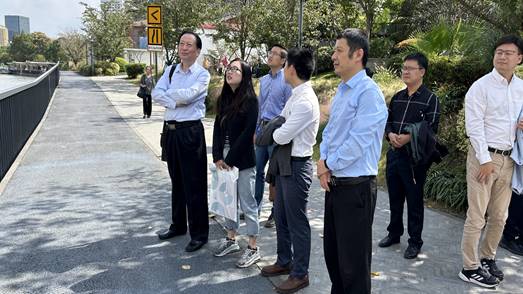 调研中,蔡新立一行先后考察了“悬浮森林”大洋晶典·天安千树、爱馨院智慧康养综合服务中心、上海漕河泾科技绿洲等城市更新、海绵城市建设经典案例。