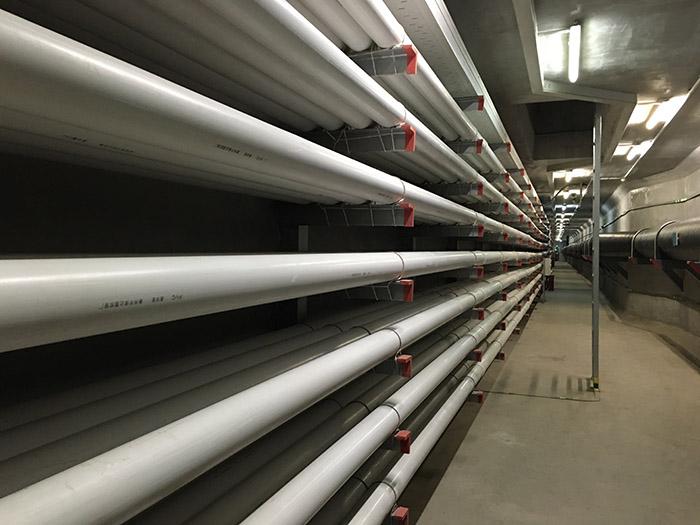 除了在地面以上使用透水砖、下沉式绿地来蓄积雨水径流外,剩余雨水的排放将依赖城市地下综合管廊。