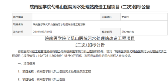 皖南学院弋矶山医院污水处理站改造工程项目(二次)招标公告