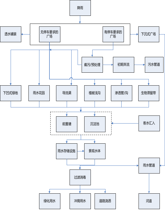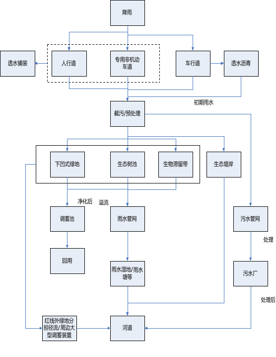 3.1.2 海绵城市建设规划应统筹发挥自然生态功能和人工干预功能,以源头减量 为重点,结合过程控制和末端治理,形成完善的雨水综合管理体系。