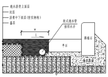 可渗透、滞留和排放雨水并满足荷载要求和结构强度的铺装结构。根据铺装 结构下层是否设置排水盲管,分为半透水铺装和全透水铺装。