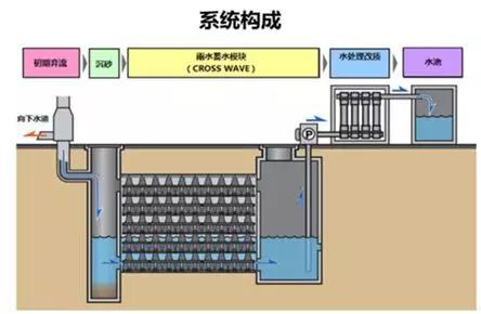 雨水调蓄模块的主要作用是雨水收集、存储、调蓄。降水时把雨水径流的高峰流量暂存其中,待最大流量下降后再从雨水收集池中将雨水慢慢排出。
