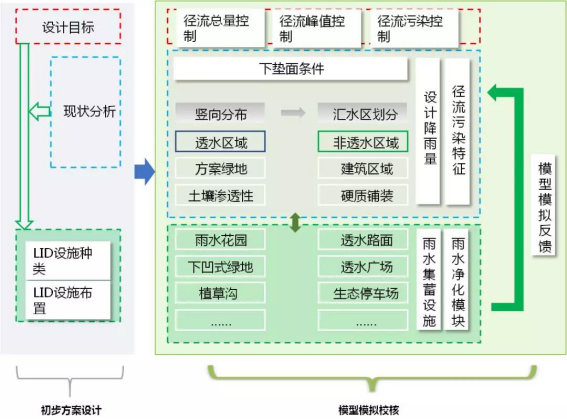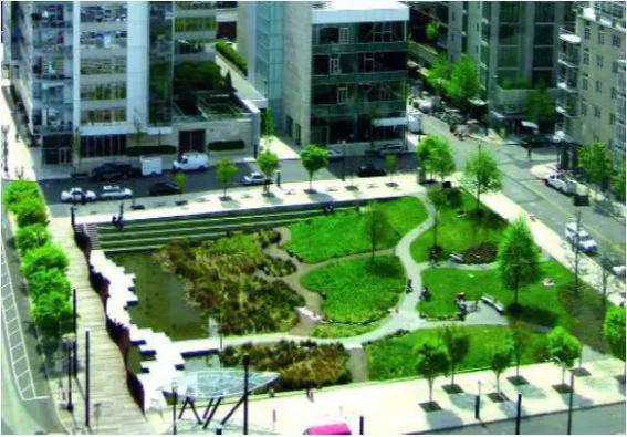 通过各类绿色雨水基础设施的建设和多项措施联合作用,达到降低地表径流量、控制城市内涝的目的
