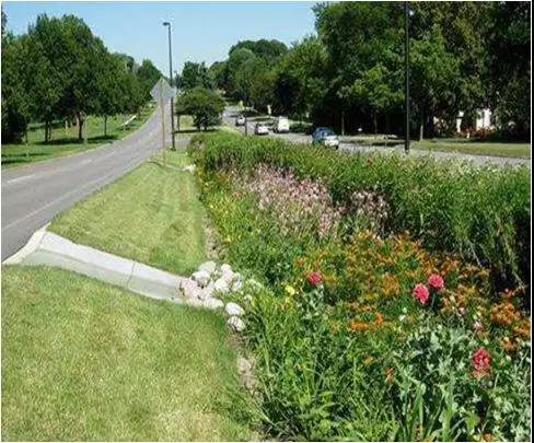 它收集来自屋顶或地面的雨水,通过土壤和植物的过滤作用使之净化,并将雨水暂时蓄留其中,之后慢慢入渗土壤从而减少径流量。