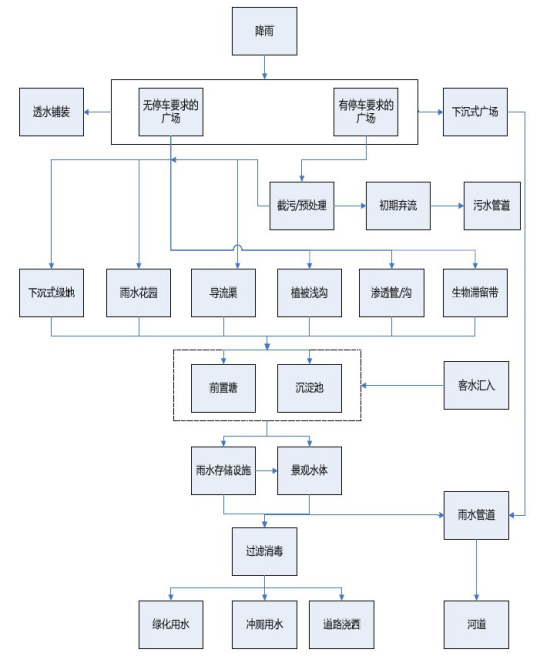 3.1.2 海绵城市规划和建设应统筹发挥自然生态功能和人工干预功能,以源头减 量为重点,结合过程控制和末端处理,形成完善的雨水综合管理体系。