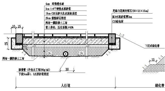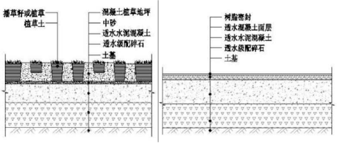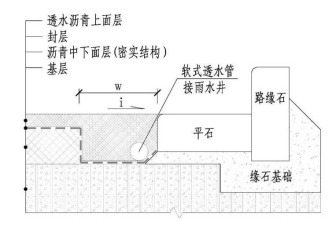 可渗透、滞留和排放雨水并满足荷载要求和结构强度的铺装结构。根据铺装 结构下层是否设置排水盲管,分为半透水铺装和全透水铺装。