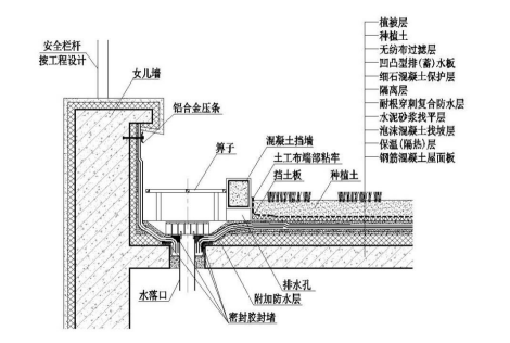 又称种植屋面或屋顶绿化,指在高出地面以上,与自然土层不相连接的各类 建筑物、构筑物的顶部和天台、露台上由表层植物、覆土层和疏水设施构建的具 有一定景观效应的绿化屋面。
