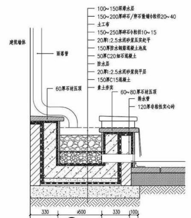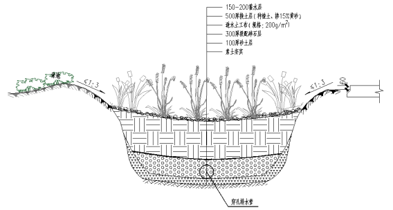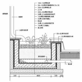 10.8.4.5 设施节点设计 雨水花园作为海绵城市设施的前置塘,配合卵石过滤措施对进入的雨水径流