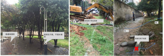 项目萍乡当地土壤限制渗透能力有限,生物滞留池和雨水花园等低影响开发 设施的下渗能力不足,通过反复试验获取了土壤改良的有效手段,采用种植土掺 5~8%的黄砂进行回填的做法,渗透效果较好(见图 10-31)。