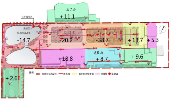 图 10-29 市建设局、总工会汇水分区之间径流控制补偿或平衡设计图
