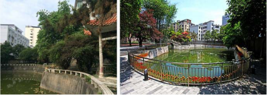 10.8.5.2 建成效果 景观水池通过补水、活水措施,水量得到了明显保障,池内水体水质明显改