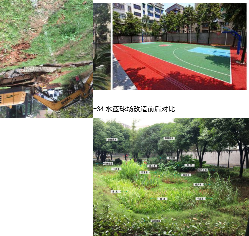 善。池边透水铺装改造后,生态性、舒适性明显提升。篮球场改造后,为社区增 加了一处良好的休闲建设场所,成为小区年轻居民业余休闲最受欢迎的场所。