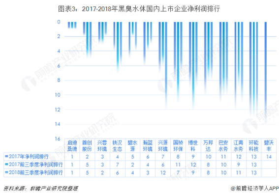 前瞻产业研究院发布的《中国黑臭水体治理行业发展前景预测与投资战略规划分析报告》对黑臭水体治理产业链中的上市企业进行了深入解读。整体来看,国内具备整合设计、建设、融投资和运营能力的环境治理运营商较少,参与黑臭水体治理的合格运营商数量较为有限。根据前瞻产业研究院的整理,目前在黑臭水体治理走在全国前列的环保企业主要有A股上市企业碧水源、启迪桑德、首创股份、铁汉生态、瀚蓝环境、兴蓉环境等,港股上市企业主要有康达国际环保,天津创业环保集团。