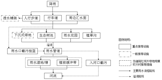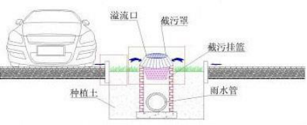 雨水控制利用典型设施包括雨水花园、植草沟、下沉式绿地、生态树池、透水铺 装、雨水口截污设施、绿色屋顶等。