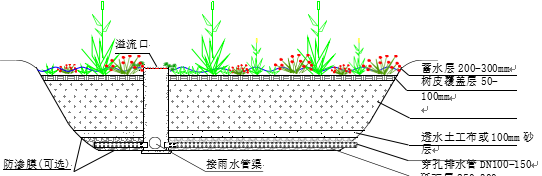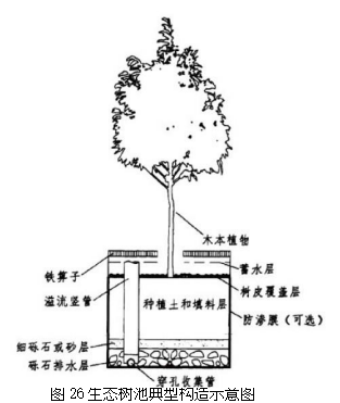 层、蓄水层、土壤层、过滤层(或排水层)构成,包括雨水花园、生态树池、高