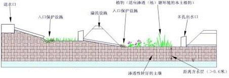 雨水塘可应用于公园、滨河绿地、居住区绿地、道路等具有较大空间的城市 雨水塘典型结构