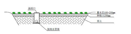 自然形成或人工挖掘的下凹式绿地,种植灌木、花草,形成小型 雨水滞留入渗设施,用于收集来自屋顶或地面的雨水,利用土壤和植 物的过滤作用净化雨水,暂时滞留雨水并使之逐渐渗入土壤。