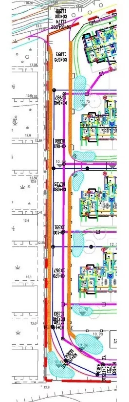 项目区域主要利用雨水花园、下沉式绿地、透水铺装、雨水花坛和雨水回用设施对初期雨水进行源头净化。结合雨落管和道路竖向合理设置雨水花园和下凹式绿地,将停车位设置为透水铺装,同时在18#建筑北侧设置雨水回用设施,回用于小区绿化和道路浇洒。