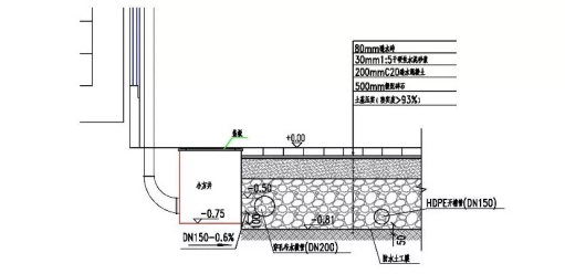 (2)溢流雨水口低于周边地面10cm,以防止雨量过大或者溢流口堵塞导致场地积水。