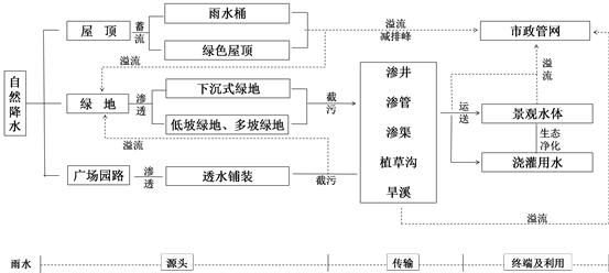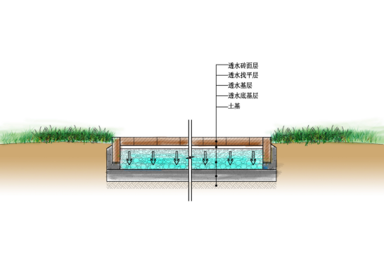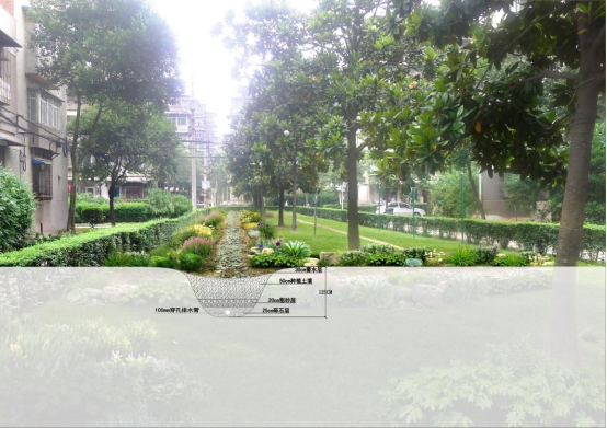在降雨期间滞留和蓄存部分雨水以增加雨水的入渗、蒸发并收集回用。
