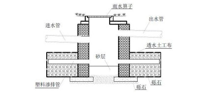 渗井指通过井壁和井底进行雨水下渗的设施,为增大渗透效果, 可在渗井 周围设置水平渗排管,并在渗排管周围铺设砾(碎)石。