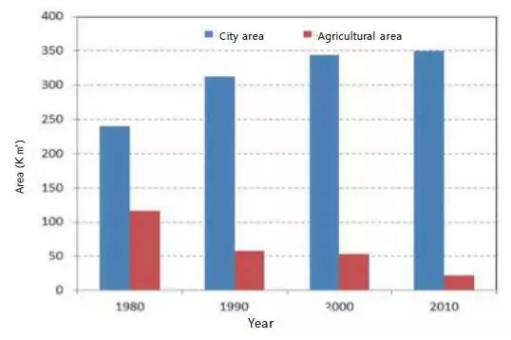 首尔城区面积及农业种植面积的变化对比 (图片:Seoul Solution)
