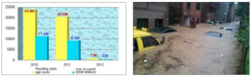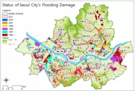 由洪灾所造成的不同程度的损失, 首尔 (图片:Seoul Solution)