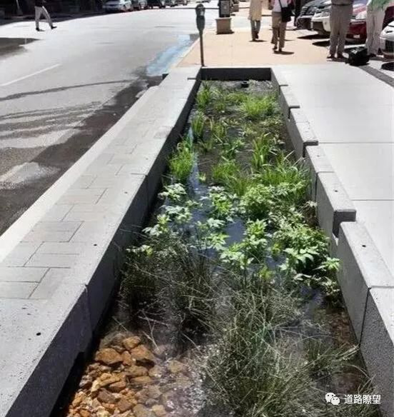 植草沟指种有植被的地表沟渠,可收集、 输送和排放径流雨水,并具有一定的雨水净化作用,可用于衔接其他各单项设施、城市雨水管渠系统和超标雨水径流排放系统。除转输型植草沟外,还包括渗透型的干式植草沟及常有水的湿式植草沟,可分别提高径流总量和径流污染控制效果。