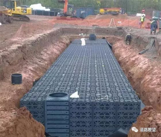 蓄水池指具有雨水储存功能的集蓄利用设施,同时也具有削减峰值流量的作用,主要包括钢筋混凝土蓄水池,砖、石砌筑蓄水池及塑料蓄水模块拼装式蓄水池,用地紧张的城市大多采用地下封闭式蓄水池。