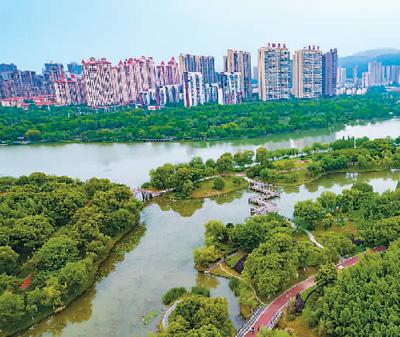近年来,江西省新余市以海绵城市建设为统领,统筹实施城市防洪排涝设施建设、地下空间建设等,奠定了新老城区的“天然海绵体”本底,进一步提升城市人居环境。图为新余市孔目江国家湿地公园郁郁葱葱。 赵春亮摄(人民视觉)