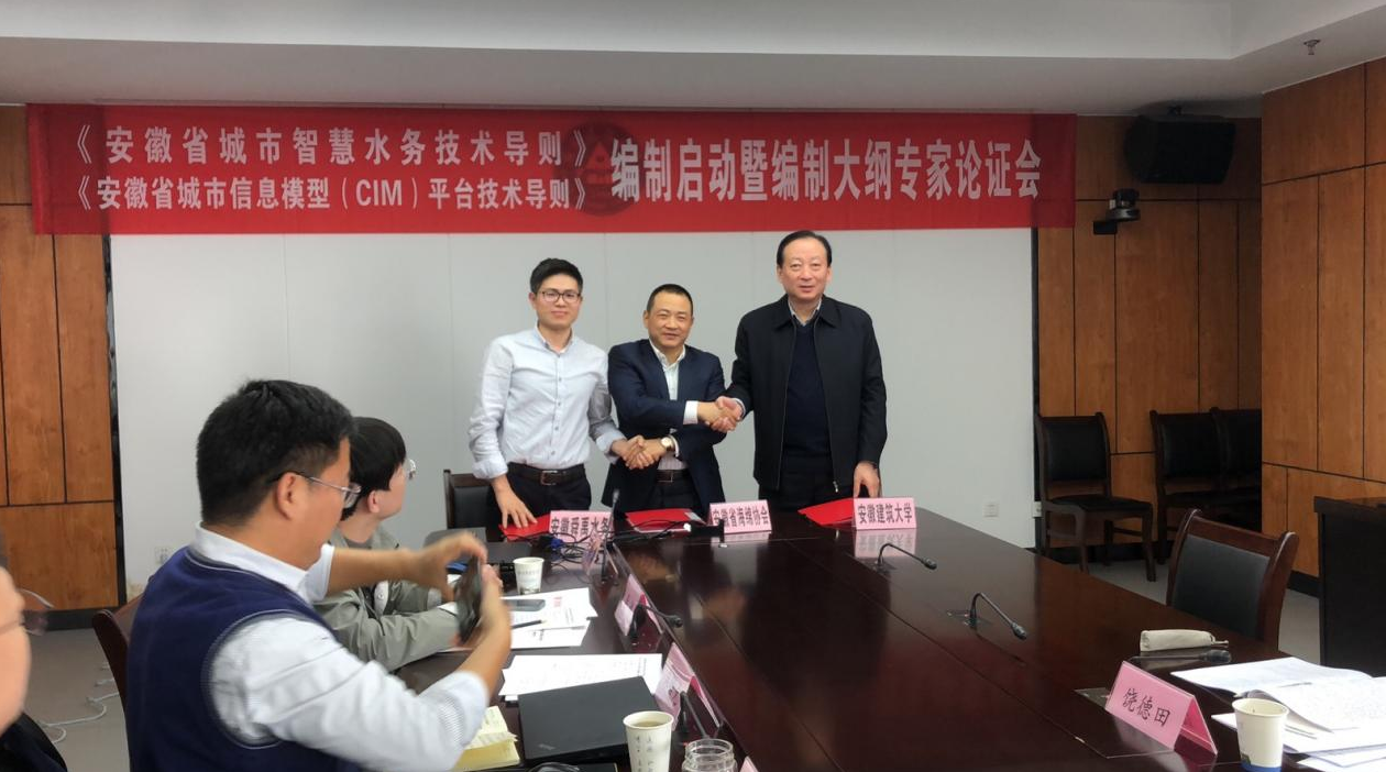 会议通报了导则编制前期准备及导则编制工作领导小组、导则编制工作组成立情况,协会与安徽建筑大学、博景生态环境发展有限公司、安徽舜禹水务股份有限公司等主编单位签订了导则编制协议书。与会代表们在审阅导则编制大纲及相关技术资料的基础上,听取了导则编制组关于导则的编制目的与意义、编制过程、编制主要内容、成果形式等汇报。会议充分肯定了编制《安徽省公园城市建设技术导则》《安徽省城市智慧水务技术导则》《安徽省城市信息模型(CIM)平台技术导则》的重要现实意义和必要性,填补了安徽省空白。与会专家建议:强化调研,深入分析安徽特色和地域差异,强化典型案例支撑,使导则更具有较强指引性和可操作性。