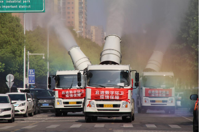 为最大程度减少病毒在公共区域的传播,让消毒作业更加高效专业,启迪数字环卫集团承包了加侨悦山国际小区东区的环境消杀任务。3辆雾炮车每天中午、晚上两次在小区内及外围主要道路进行循环消杀作业。