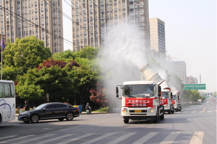 雾炮车开展环境消杀作业